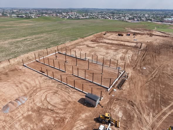Өндірістік паркте бүгінде 2 нысанның іргетасы құйылып, тіреу конструкциялары орнатылған. Тағы 2 нысанның іргетасы құйылу үстінде. Ал 1 нысанның құрылысы алдағы аптада басталады.